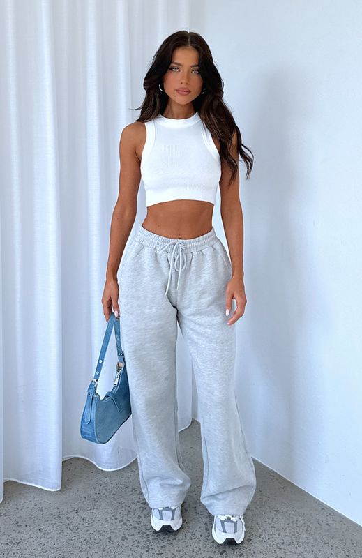 Stick With Me Wide Leg Sweatpants Grey Marle